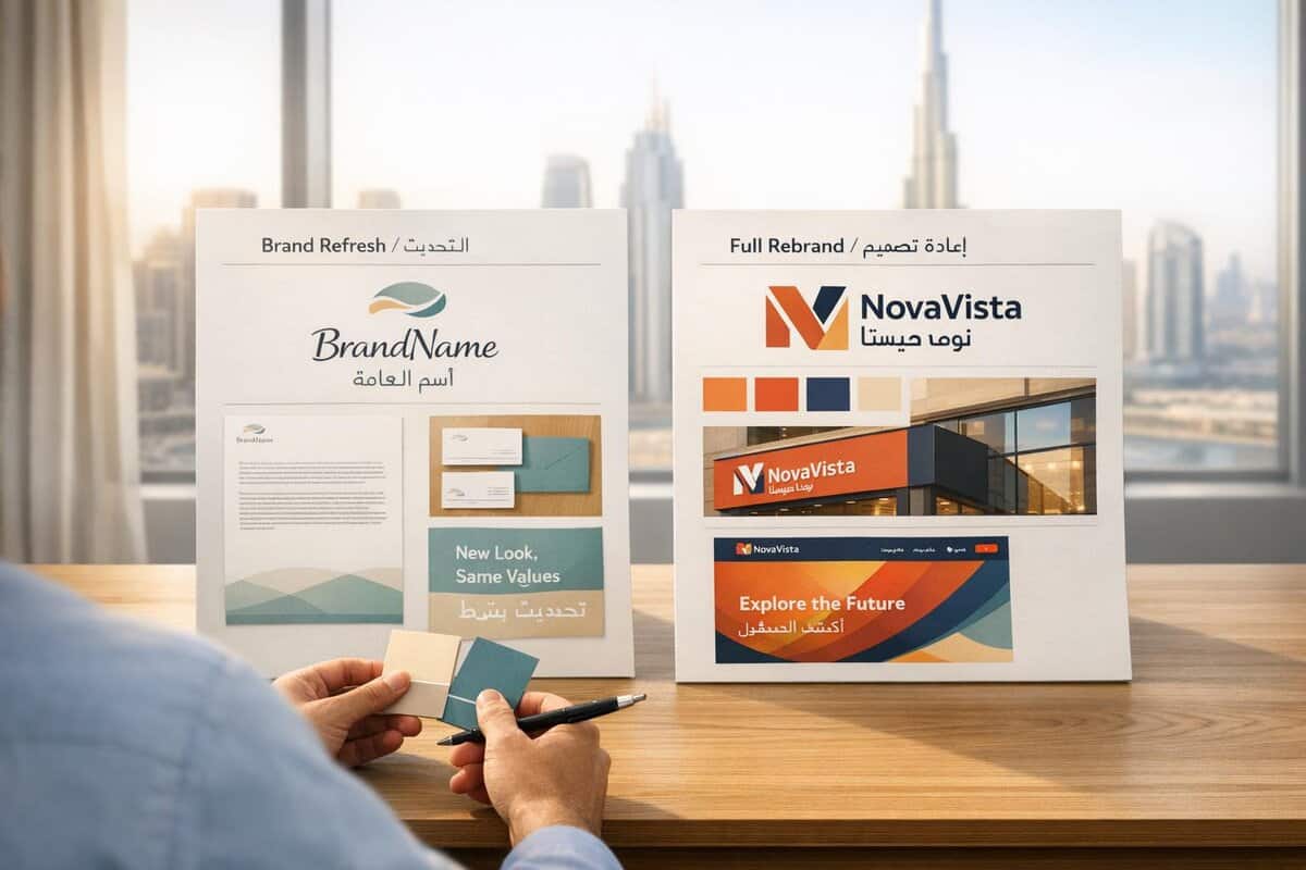 It’s also a practical choice for businesses with limited budgets or tight timelines. A professional refresh for an SME typically costs between AED 69,700 and AED 128,600 and takes around 1 to 2 months. It’s an efficient way to modernise without the disruption of a full-scale rebrand.